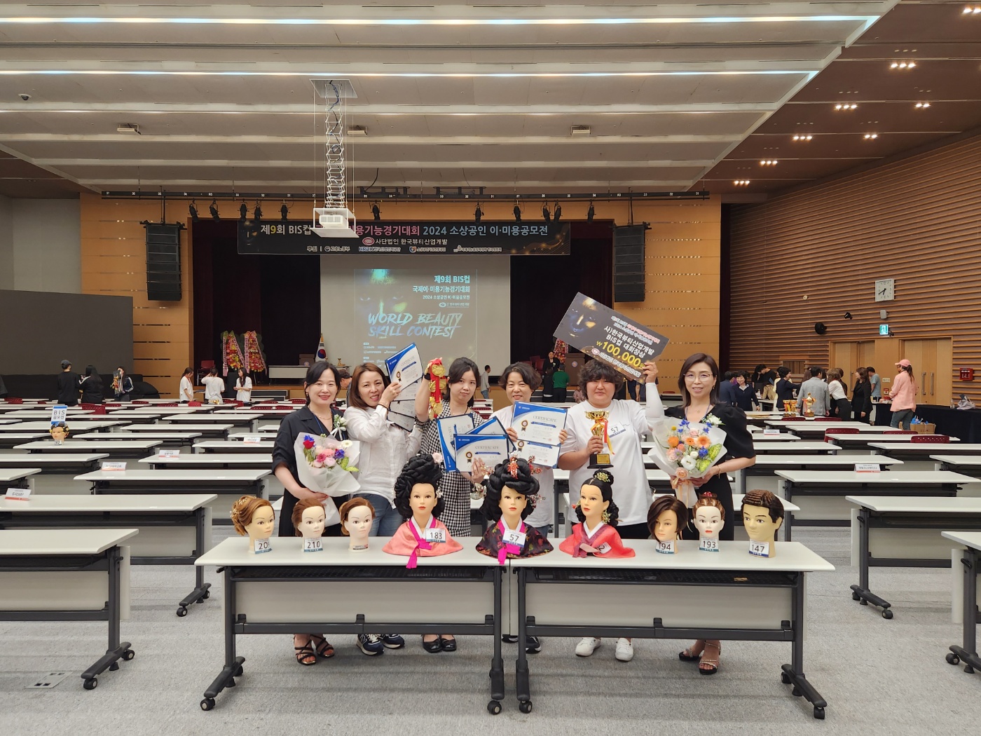 ○ 이번 대회에 뷰티미용과 SYBG(서영대학교 뷰티미용과의 성장) 야간 만학도 헤어 동아리팀에서 고전머리, 업스타일, 남성아이롱 등으로 출전과 공모전을 출전해 대회장상, 대상, 금상, 은상, 동상 등 8명 전원이 입상을 하였다.
