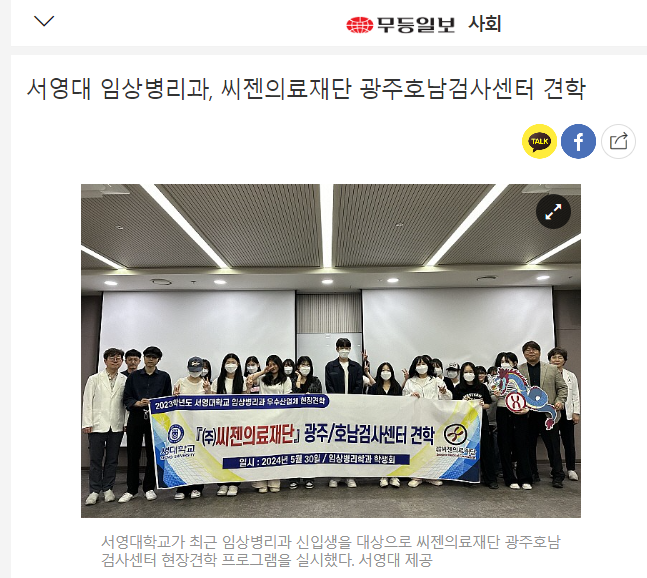 서영대학교가 최근 임상병리과 신입생을 대상으로 씨젠의료재단 광주호남검사센터 현장견학 프로그램을 실시했다고 3일 밝혔다.