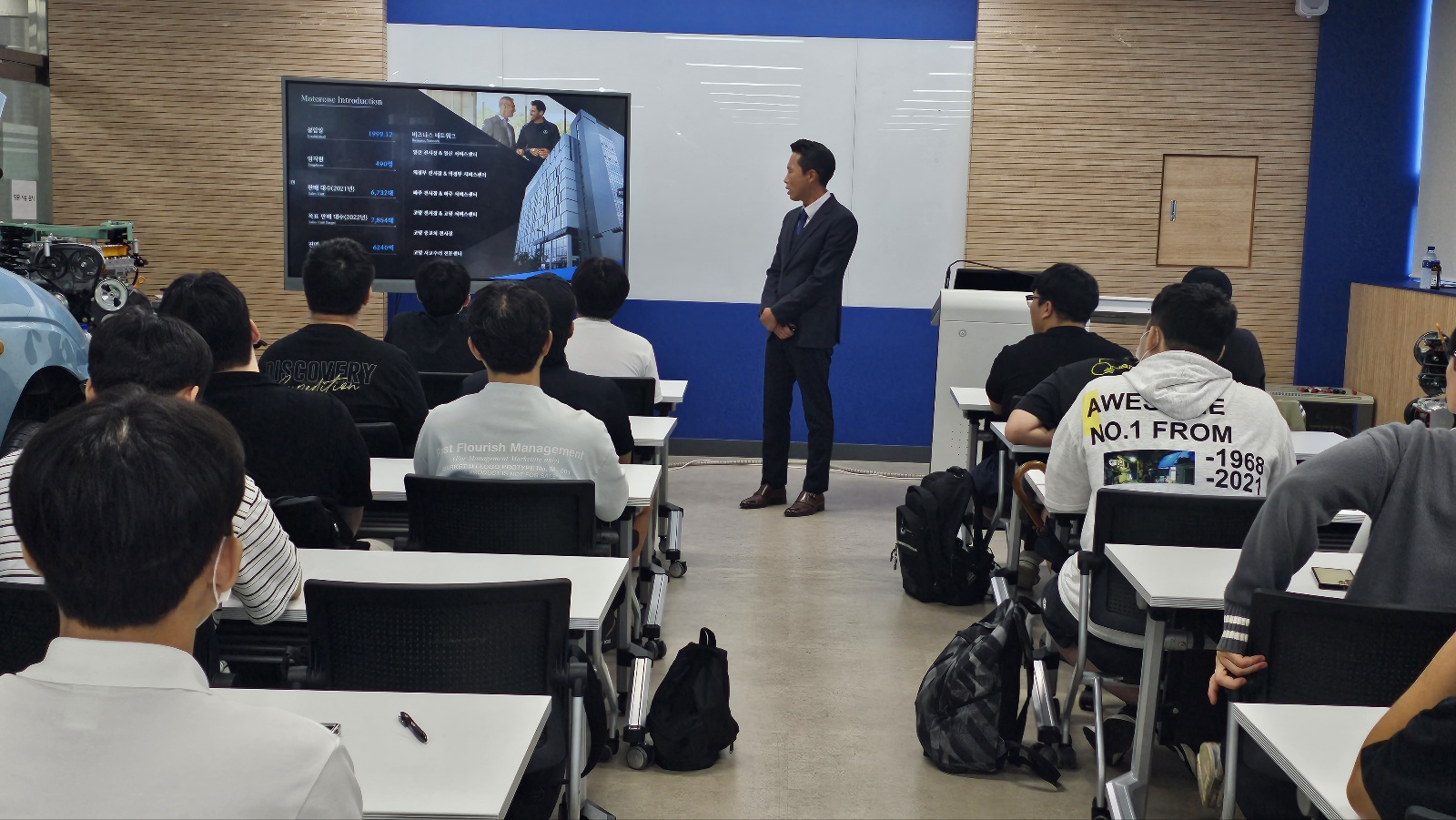 메르세데스 벤츠 모터원(주) 관리지원부 김 * 호 차장님께서 미래자동차과 2학년 재학생들에게  채용 설명회를 진행하였습니다.
