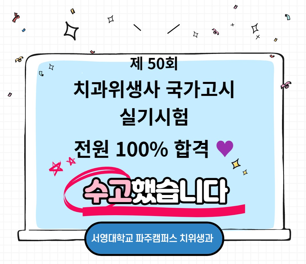 제 50회 치과위생사 국가고시 실기시험 전원 합격하였습니다^^