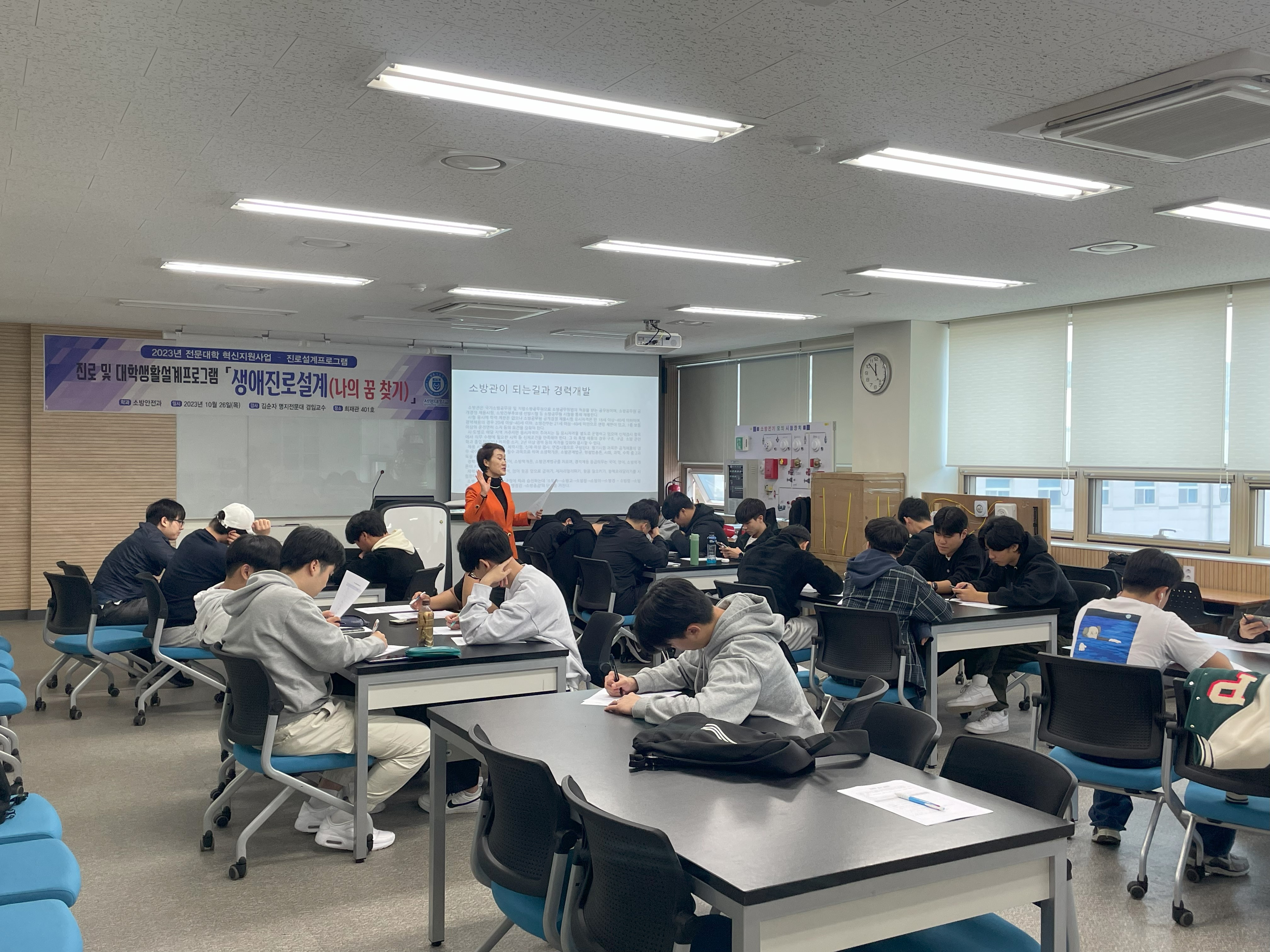 소방안전과 1학년 대생 소방인의 미래를 디자인 할 수 있는 꿈 찾기 특강을 실시 했어요 ~~
