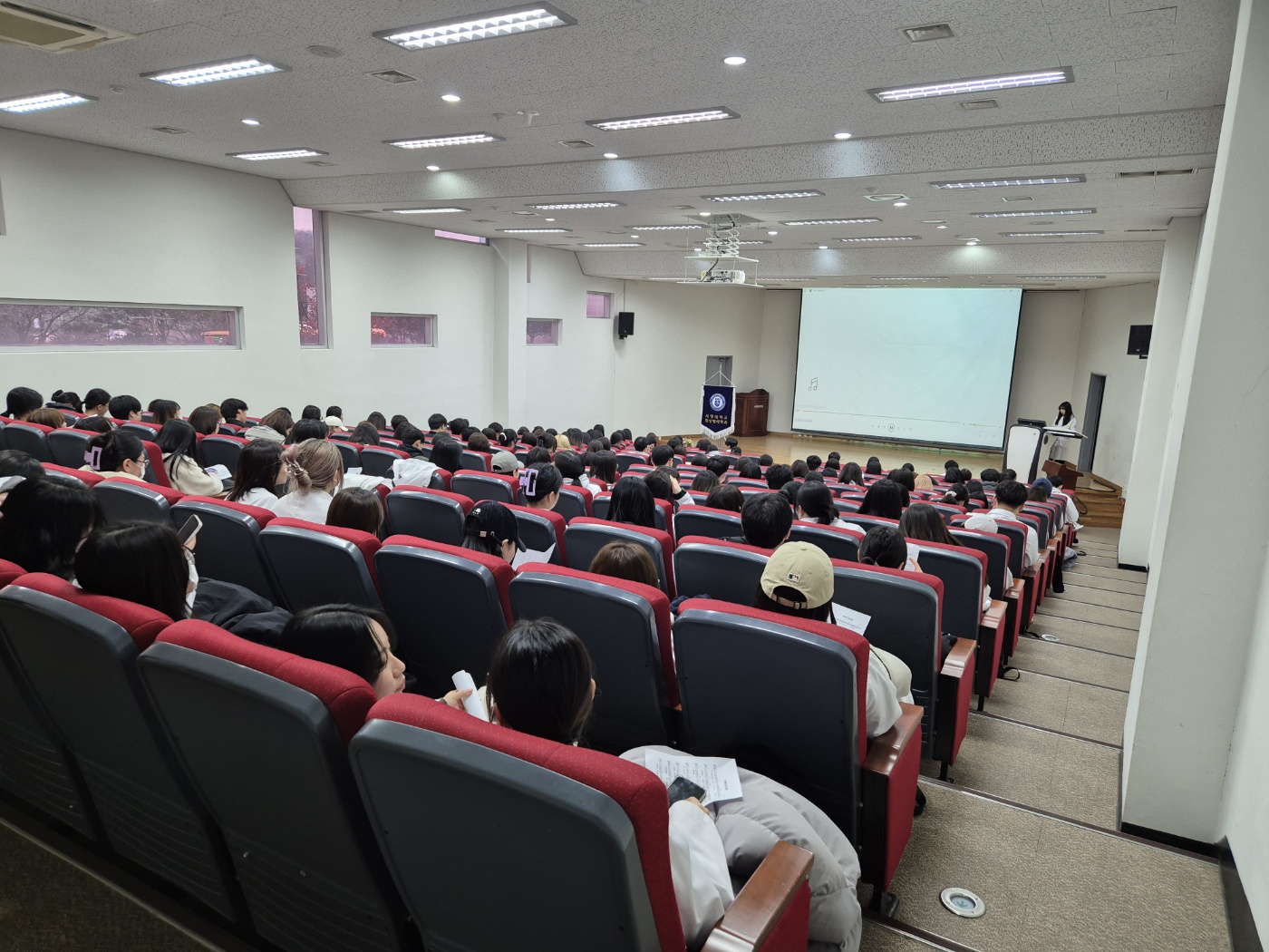 마지막으로 비상이와 함께 학과응원곡을 불러보고 익히는 청음회를 진행했습니다. 학과교수진과 학생들이 함께 응원곡을 부르며 최강임상인으로 하나가 되었음을 다시 한 번 느꼈습니다.