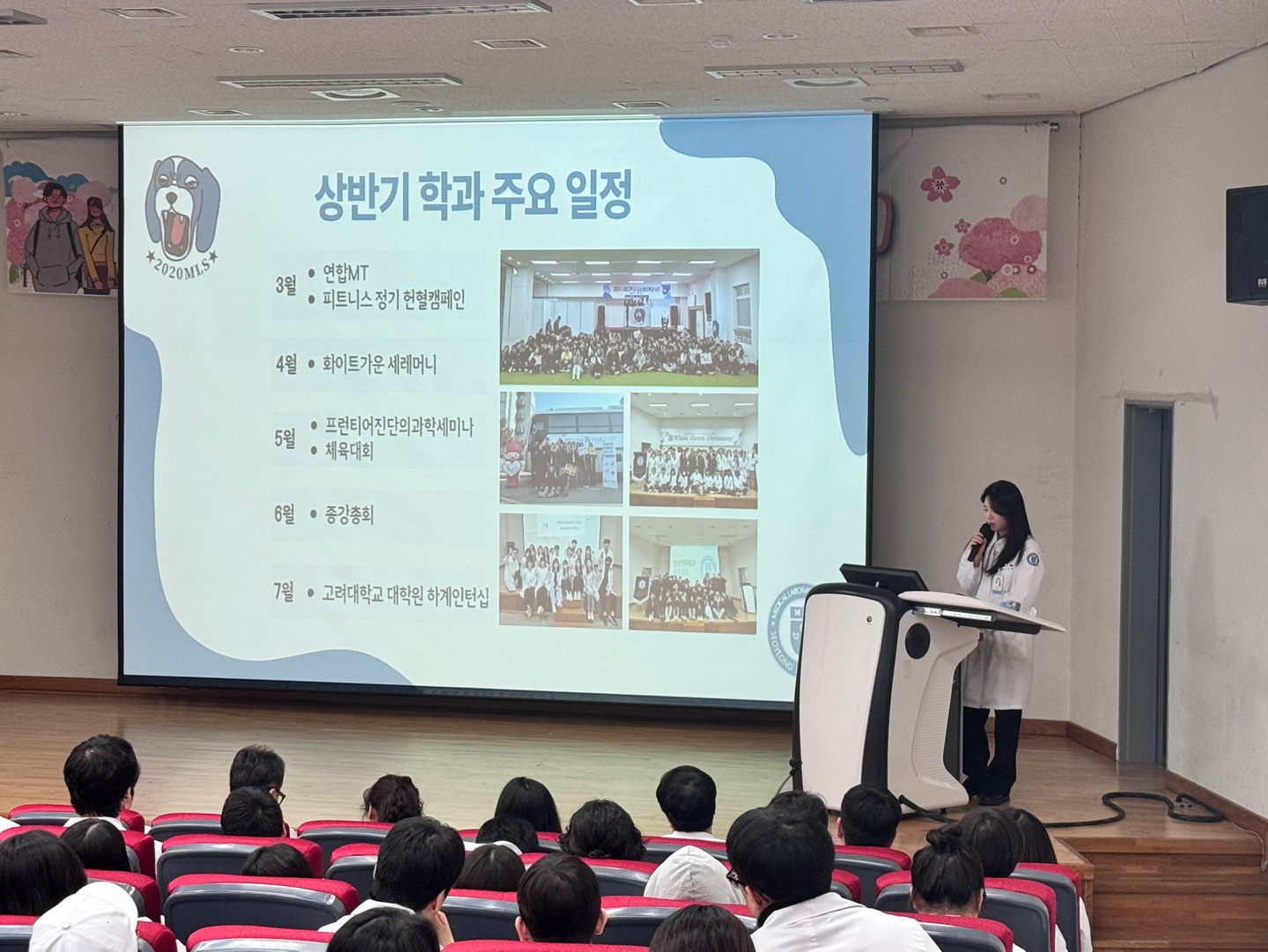 개강총회는 최강임상학생회 김주영 학회장(23학번)의 진행으로 진행되었으며, 이지웅 학과장님이 2025년도 학과 운영 방안을 발표하며 앞으로의 학과 발전 방향과 계획을 공유했다. 또한, 1학기에 진행될 주요 학과 프로그램인 연합 MT, 피트니스 헌혈 캠페인, 화이트가운 세레머니, 프런티어 진단의과학 세미나, 체육대회 등이 소개되며 학생들의 기대감을 높였다.