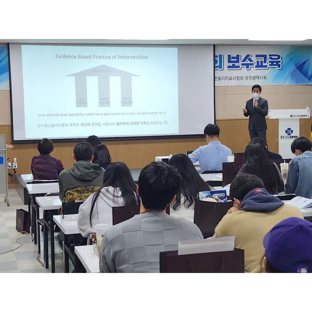 지난 4월 9일 일요일 물리치료사 현장 보수교육이 광주 365 재활병원에서 열렸습니다~!! 이번 현장에서 실시하는 보수교육은 코로나로 인해 3년 만에 열렸는데요. 물리치료사를 대상으로 진행하는 현장 보수교육에 저희 송요한 학과장님이 강의를 하셨습니다.